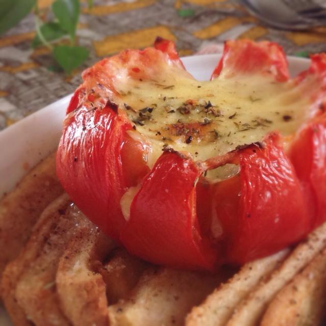 SnapDishに投稿されたまちまちこさんの料理「ゆみちゃんが14日まえに作ってたやつ (ID:mWy4fa)」です。「番茄起司焗烤 ゆみちゃん これ美味しい オリーブオイルかけるの忘れてたけど十分美味しかった おっきなトマト一人でペロッといけるね トマトの下は安定させるためにパン耳のフレンチトーストを敷きました これがまたトマトとチーズにからまって うまうまでした ゆみちゃん レシピ載せてないから食べ友でお願いします」14日 ちゃん 日