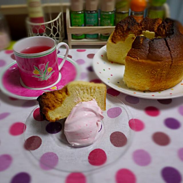 SnapDishに投稿された石川洋子さんの料理「ちょっぴりロマンチックないちごカルピスシフォン (ID:LLWPqa)」です。「カルピス使う以外シフォンケーキは 惨敗続きですが カルピスシフォンの配分率は もぅバッチリ o vホイップクリームに カルピスを混ぜると フルーティーで爽やかなクリームが出来ますよ」いちご カルピス シフォン